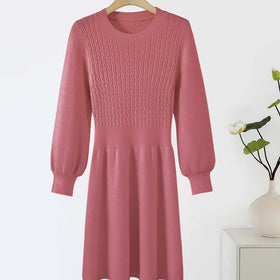 Damen Strickkleid mit voluminösen Ärmeln und strukturiertem Oberteil Amawinc