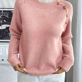 Damen Strickpullover mit dekorativen Knopfdetails und Lochmuster Amawinc