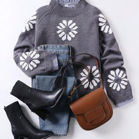 Entdecken Sie unseren Damen Strickpullover mit floralem Motiv und modernem Rundhalsausschnitt. Dieser stilvolle Pullover kombiniert Eleganz mit Komfort und eignet sich perfekt für jede Jahreszeit.
