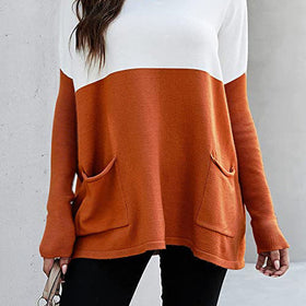 Damen Strickpullover mit großen Fronttaschen und kontrastiertem Design Amawinc