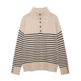 Entdecken Sie unseren hochwertigen Damen Strickpullover mit hochgeschlossenem Kragen und Knopfdetails. Dieser modische Pullover vereint Stil und Komfort und ist das perfekte Kleidungsstück für die kühleren Tage.