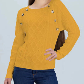 Damen Strickpullover mit klassischem Rautenmuster und dekorativen Knöpfen Amawinc