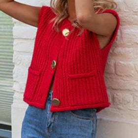 Damen Strickweste mit dekorativen Knöpfen und praktischen Taschen Amawinc