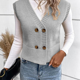 Damen Strickweste mit doppelter Knopfleiste und stylischem V-Ausschnitt Amawinc