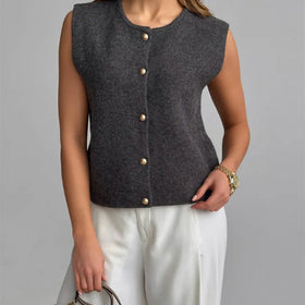 Damen Strickweste mit edlen Knöpfen Amawinc