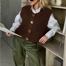 Damen Strickweste mit eleganten Knöpfen und praktischen Taschen Amawinc