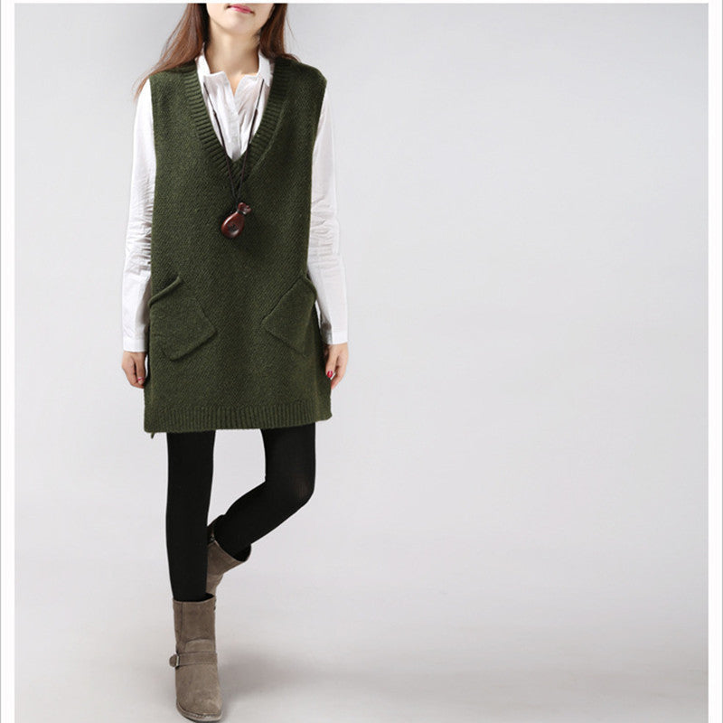 Damen Strickweste mit V-Ausschnitt und aufgesetzten Taschen Amawinc