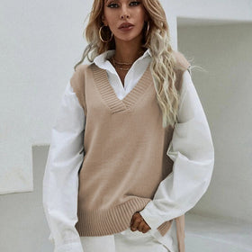 - Design: V-Ausschnitt und Rib-Strick-Textur verleihen der Weste eine moderne Note, während der lockere Schnitt eine bequeme Passform ermöglicht.