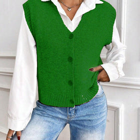 Damen Strickweste mit V-Ausschnitt und modischen Knöpfen Amawinc