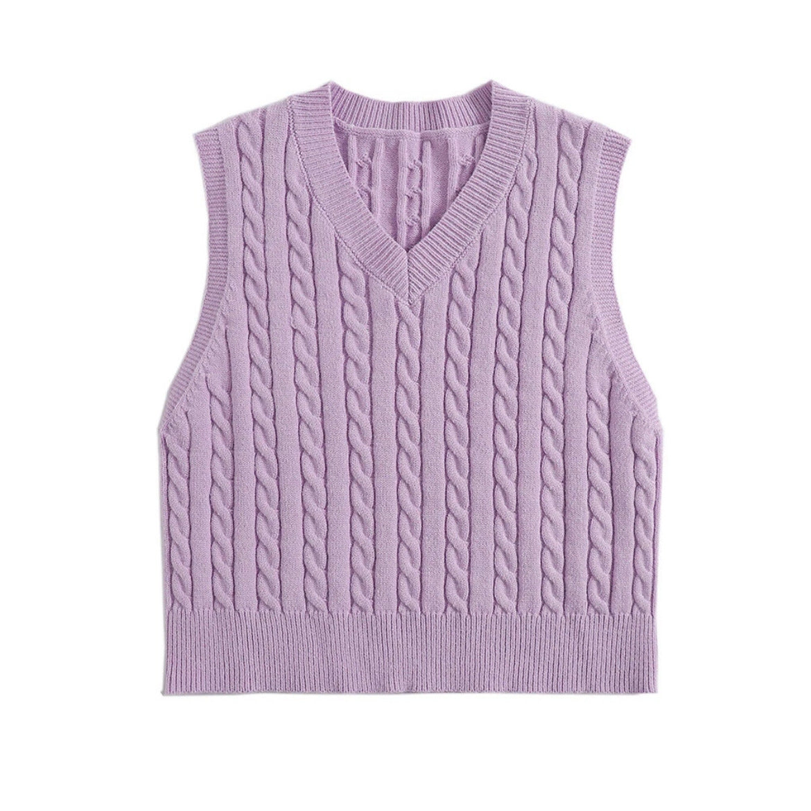 Damen Strickweste mit V-Ausschnitt und Zopfmuster Amawinc