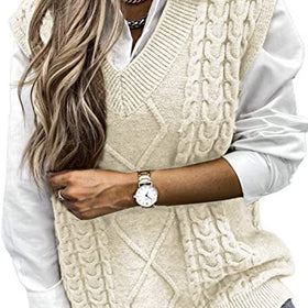 Damen Strickweste mit Zopfdesign und V-Ausschnitt Amawinc