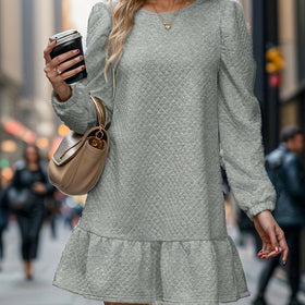Entdecken Sie das elegante Damen Sweatkleid Amawinc, das perfekt für jede Gelegenheit ist. Gefertigt aus hochwertigem, weichem Material bietet dieses Kleid sowohl Stil als auch Komfort. Die raffinierte Rautenstruktur verleiht dem Kleid einen modernen Look, während die langen Ärmel und der weite Schnitt lässige Eleganz ausstrahlen.