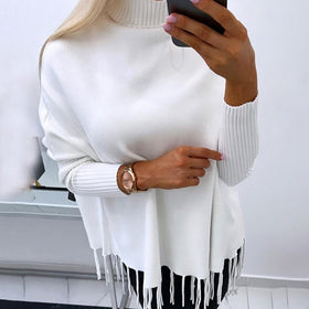 Damen-Sweatshirt mit Rollkragen und Fransenbesatz von Fudus