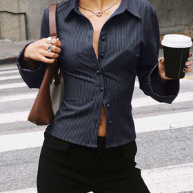 - Modisches Design: Feine Streifen und ein klassischer Klappkragen verleihen der Bluse eine zeitlose Eleganz.