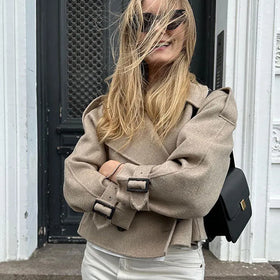 Der Eleganter Damen-Trenchcoat - Ria vereint zeitlosen Stil und Komfort. Mit Schirmkragen und klassischer Knopfleiste wirkt er elegant und passt zu verschiedenen Anlässen. Ria ist aus hochwertigen, langlebigen Materialien gefertigt und wertet jedes Outfit auf. Er verbindet Komfort und Klasse.