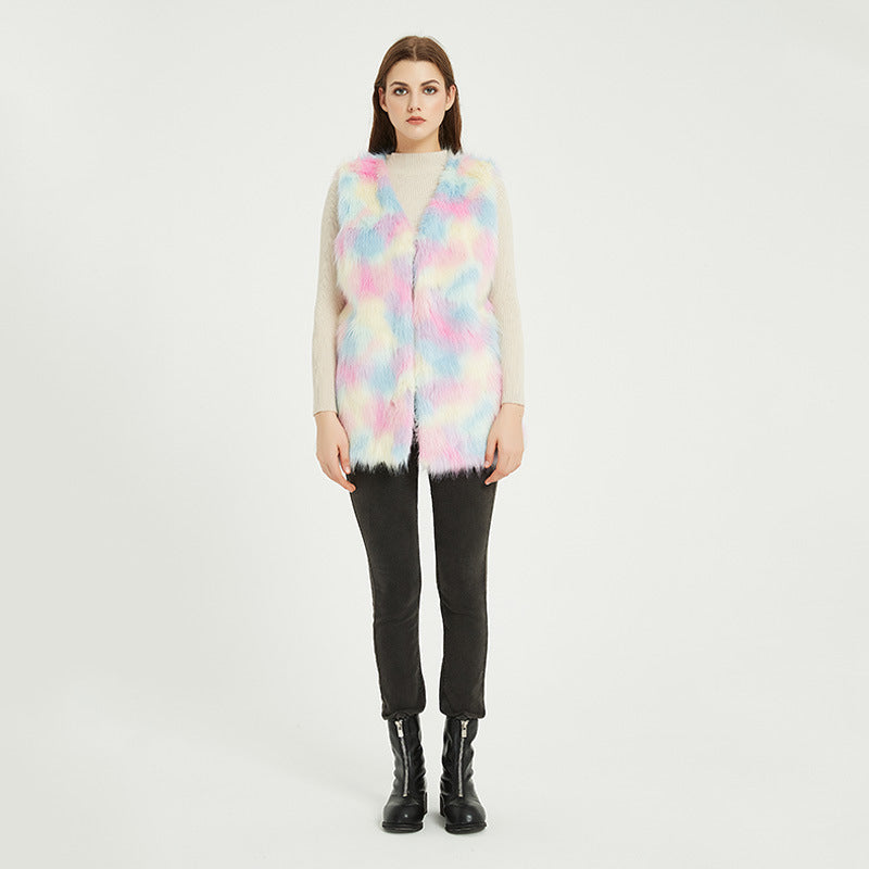 Damen Trendige Weste aus luxuriösem Kunstfell im Farbverlauf Amawinc