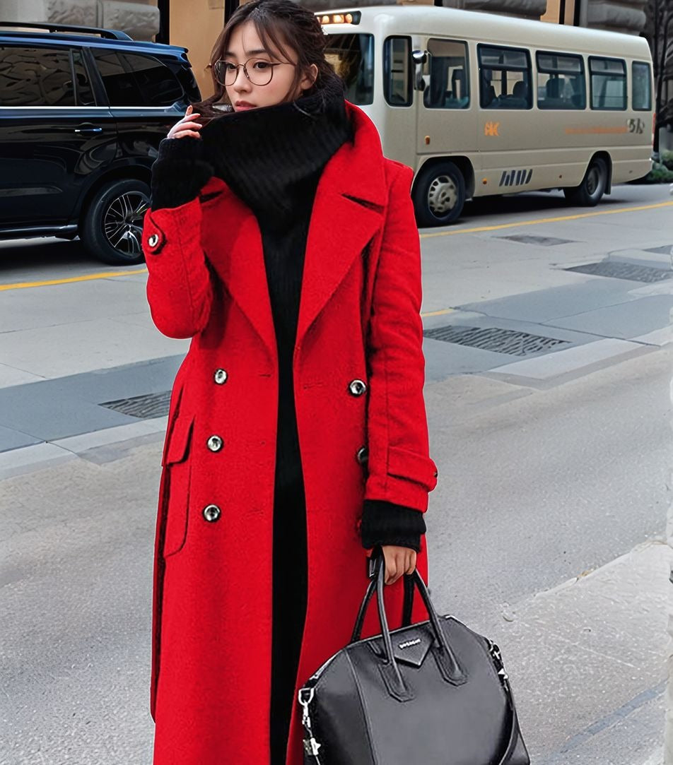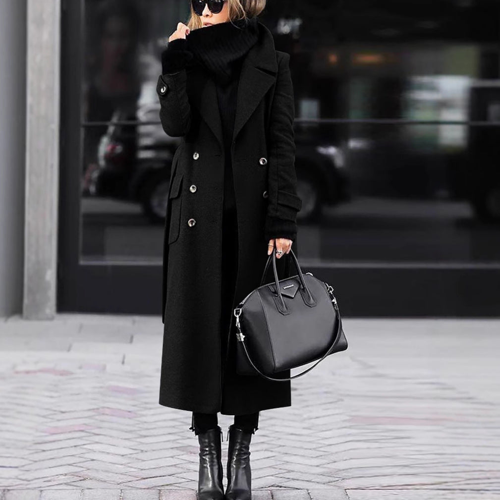 Damen trendiger Langmantel mit modischem Revers Amawinc