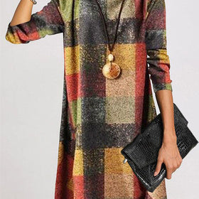 Damen trendiges Karo-Kleid mit...