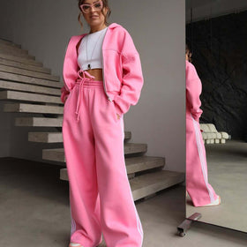 Damen Trendiges Sport-Lounge-Set mit cropped Sweatjacke und weit geschnittenen Jogginghosen Amawinc