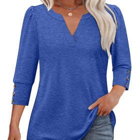 Damen V-Ausschnitt Bluse mit dekorativen Knopfdetails Amawinc