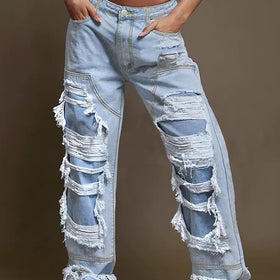 - Modisches Design: Auffällige Destroyed-Details und fransige Elemente sorgen für einen angesagten Look.