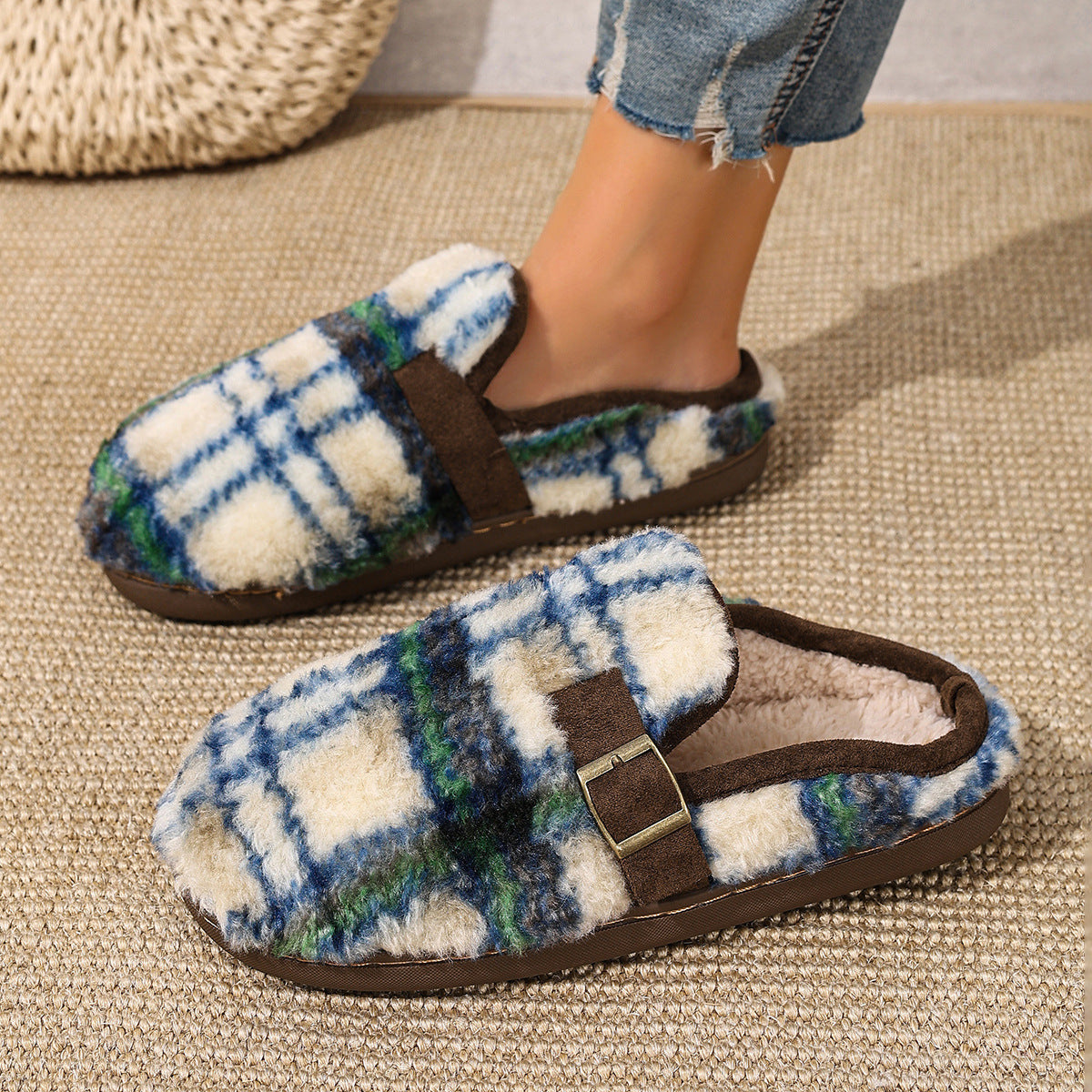 Damen Warme Hausschuhe mit Karomuster und bequemer Sohle Amawinc