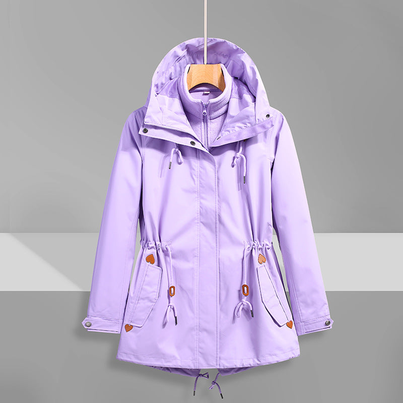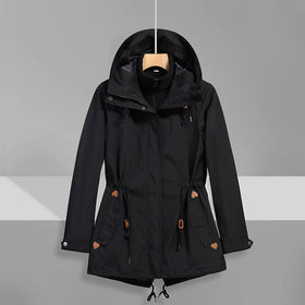 Damen wasserfeste Übergangsjacke mit verstellbarem Kapuzensystem und praktischen Taschen Amawinc