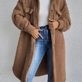 Damen Weiche und gemütliche Teddyjacke im Long-Format Amawinc