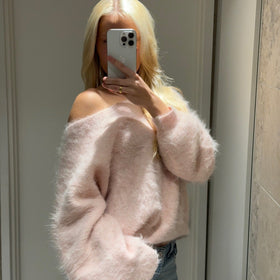 Damen Weicher Pullover aus Mohair-Mix mit oversized Ärmeln Amawinc