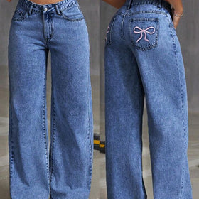 Damen Weit geschnittene Jeans mit kräftigen Kontrastnähten und verspielt gestickten Taschen Amawinc