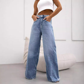 Damen Weit geschnittene Jeanshose mit hohem Bund und lässigem Stil Amawinc