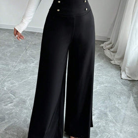 Damen Weite High-Waist Hose mit dekorativen Knöpfen Amawinc