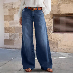 Damen Weite Jeans im Boho-Stil mit hohem Bund und komfortablem Schnitt Amawinc