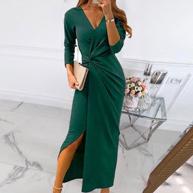 Damen Wickelmaxikleid mit elegantem Schlitz und tiefem V-Ausschnitt Amawinc