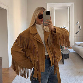 Damen Wildleder-Fransenjacke Amawinc