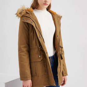 Der Winterparka mit Kunstfellkapuze für Damen - Fiene ist Ihr perfekter Begleiter für den Winter. Die plüschige Kunstfellkapuze bietet Wärme und Eleganz. Verstellbarer Taillenzug für perfekte Passform, große Taschen für Komfort. Robuster Knopf- und Reißverschluss hält die Kälte ab. Ideal für Winterabenteuer und Alltag.
