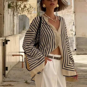 - Zeitloser Streifenlook: Klassische Streifen für eine elegante Silhouette, vielseitig kombinierbar.