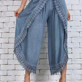 Diese monochrome Hose mit Spitzenbesatz und lockerer Silhouette verleiht Ihrem Outfit ein modernes und raffiniertes Flair.