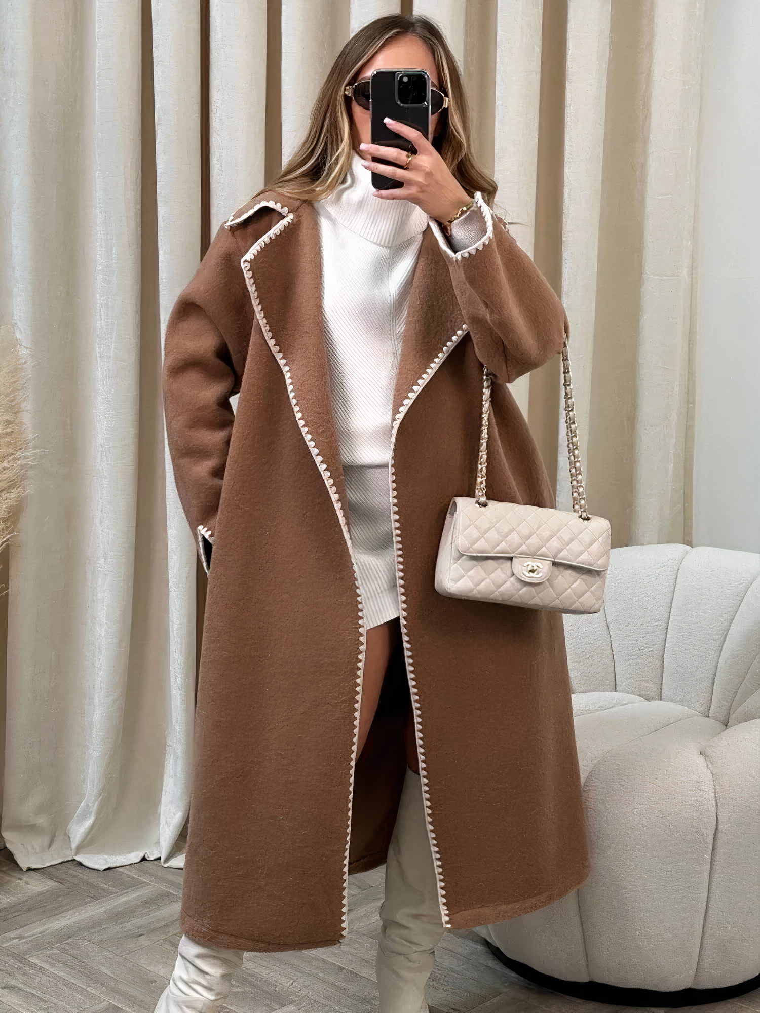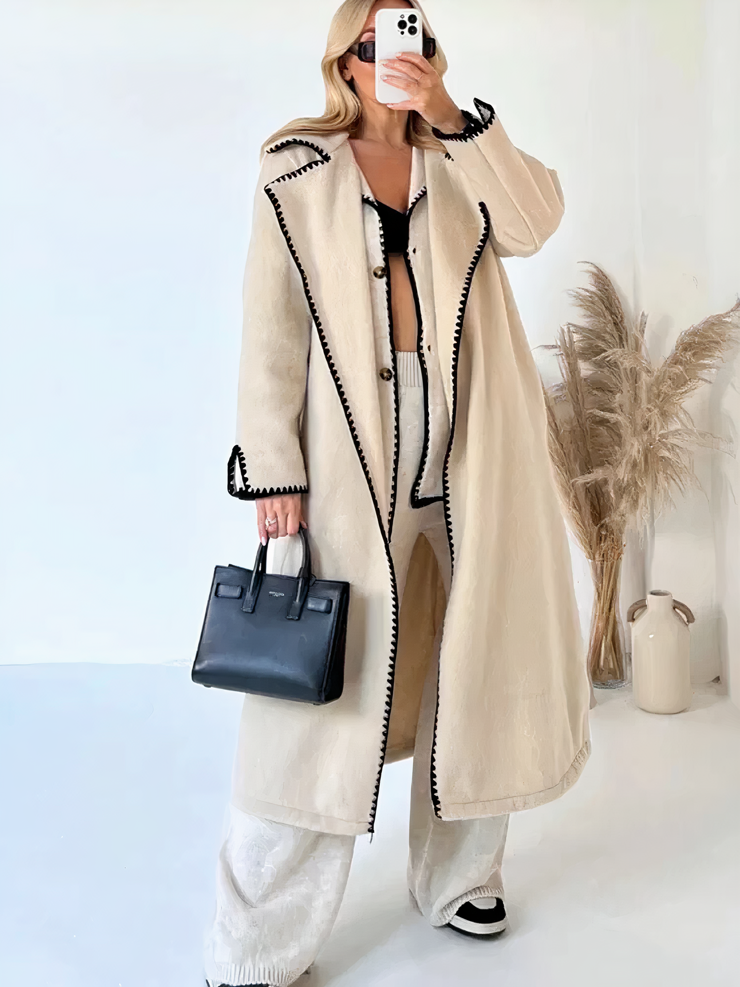Entdecken Sie den GRACIE - Langer lockerer Damenmantel mit Revers. Bleiben Sie warm, bequem und stilvoll.
