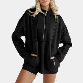 Der JEMMA - Modern Sweater für Damen ist vielseitig und bequem für jede Gelegenheit. Der halbe Reißverschluss ermöglicht variable Halsausschnitt-Einstellungen.