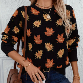 Damenpullover mit Rundhalsausschnitt aus Ahornblatt-Muster