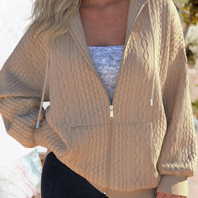 Damens Hellbrauner Kapuzenpullover mit Reißverschluss von Fudus