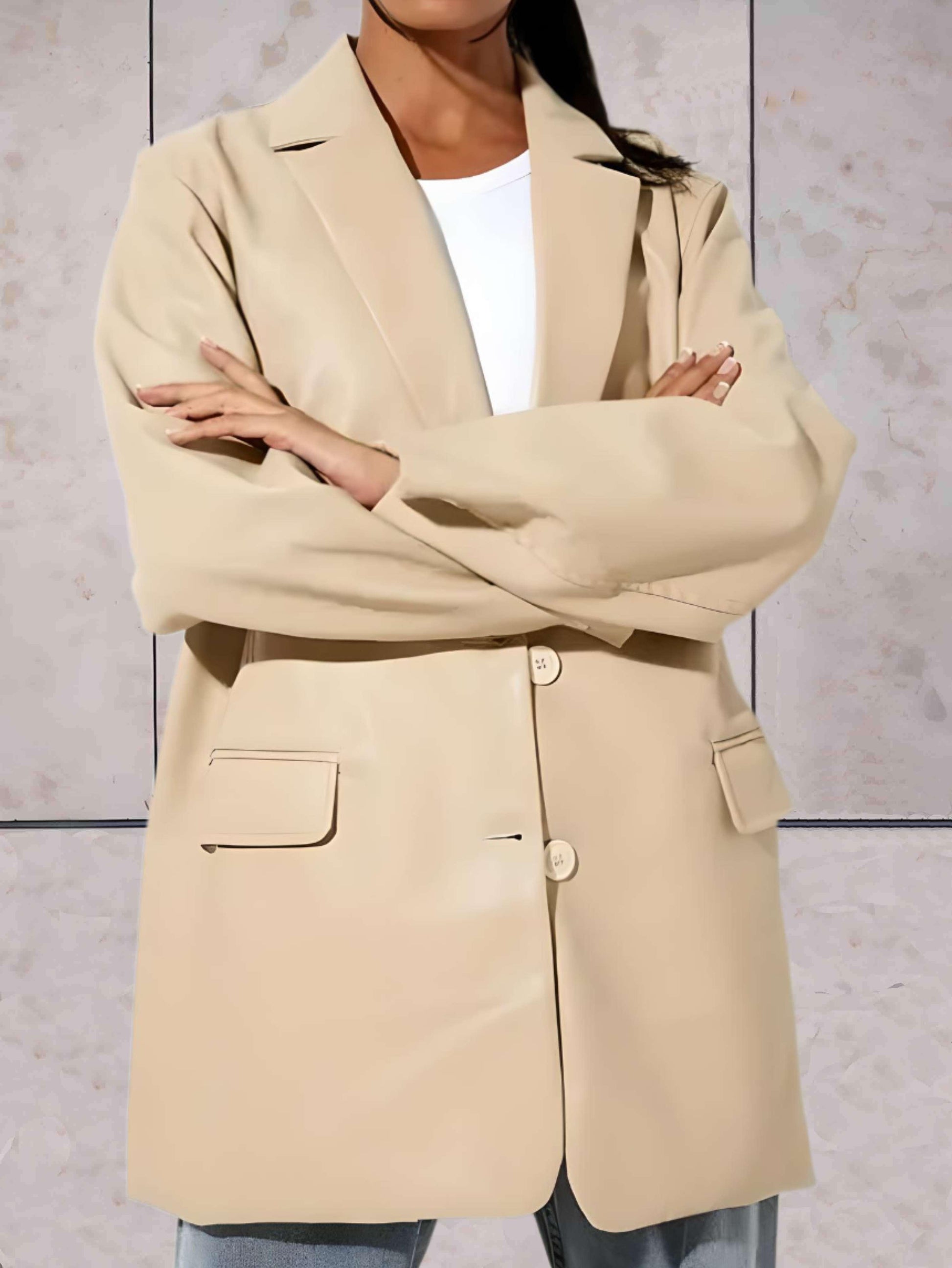 – Reverskragen & Knopfverschluss: Klassischer Reverskragen und Knopfverschluss für eine elegante Silhouette.