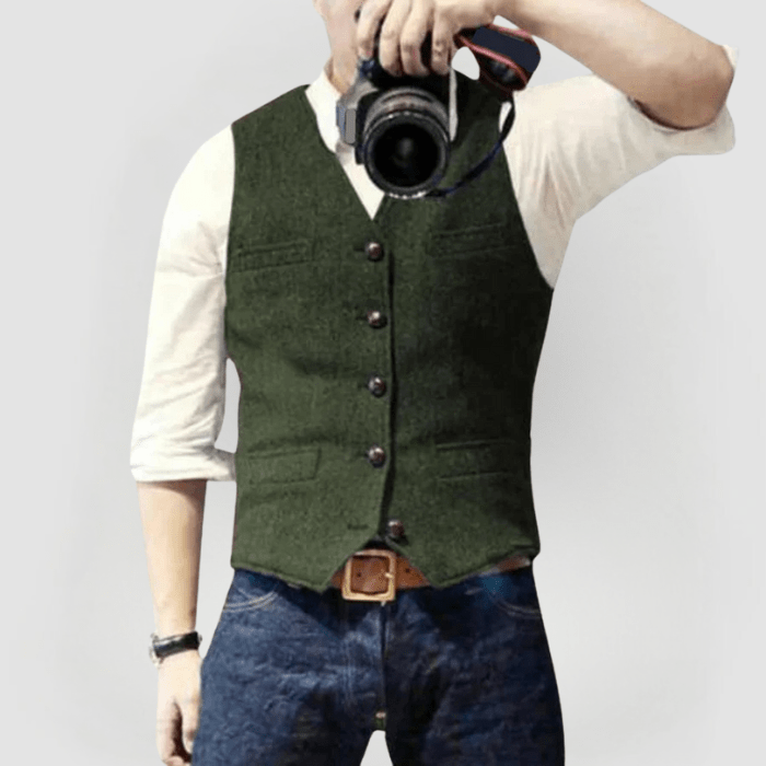 Entdecken Sie die stilvolle Reiner-Weste, unser beliebtes Design, das Eleganz und Komfort vereint. Perfekt für jede Gelegenheit, verleiht sie Ihrem Kleiderschrank einen modernen und raffinierten Touch, mit beeindruckenden Details und hochwertigen Materialien.