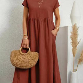 Einfaches Midikleid und Maxikleid aus Baumwolle und Leinen