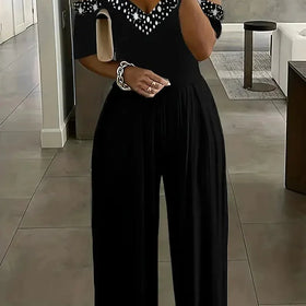 Stilvolles Kombinationsoutfit: elegantes Oberteil mit kreativen Ausschnitten & Details, bequeme Hose. Perfekt für besondere Anlässe. Modern, chic & komfortabel.
