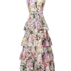 Elegantes Maxikleid mit Spaghettiträgern, Blumenmuster, Raffungen und einem figurbetonten Schnitt von Fudus.