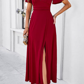 Elegantes, unifarbenes Monika-Kleid mit V-Ausschnitt