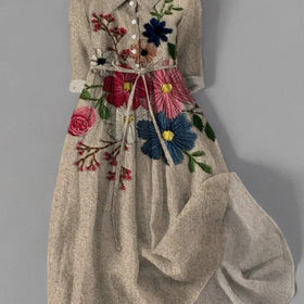 Vintage-inspiriertes Kleid mit botanischer Spitze und Taschen