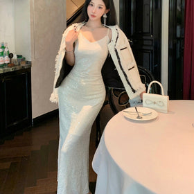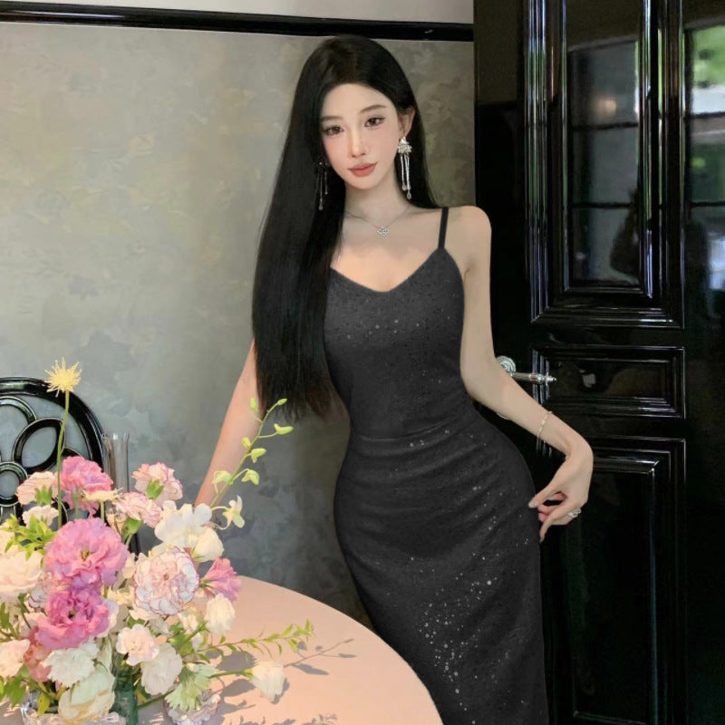Fließendes Slipdress mit Pailletten, hoher Taille von Fudus